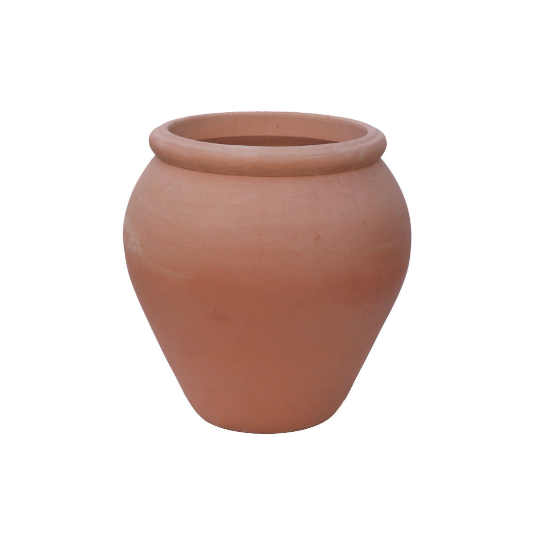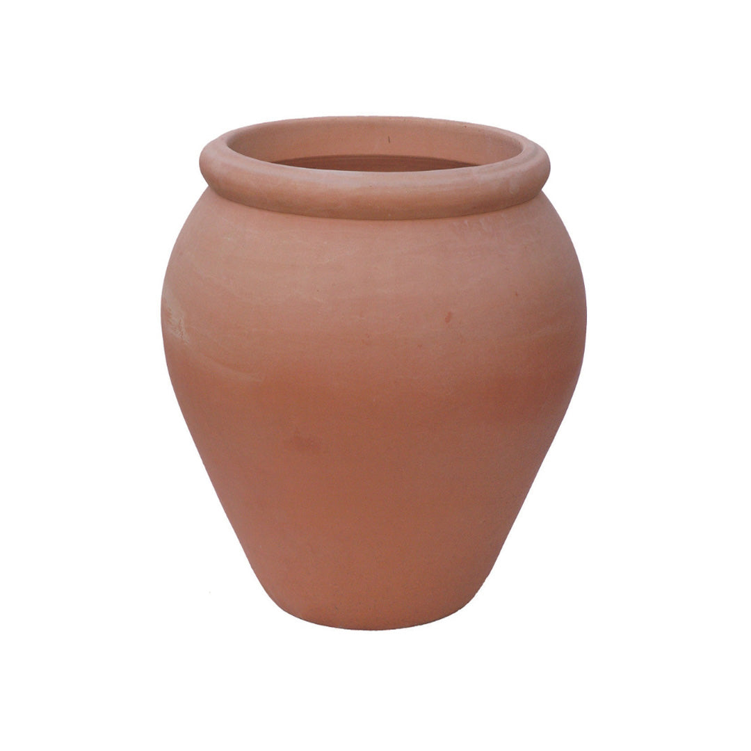 Authentic Italian water jar in terra cotta, featuring a classic, rounded silhouette with timeless Mediterranean style. Perfect for planting or as a decorative accent, this durable handcrafted jar brings elegance and charm to gardens, patios, and outdoor spaces.